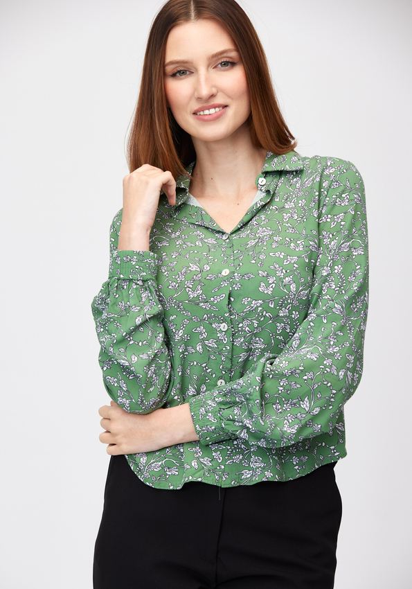 Zielona koszula w białe kwiaty 3474