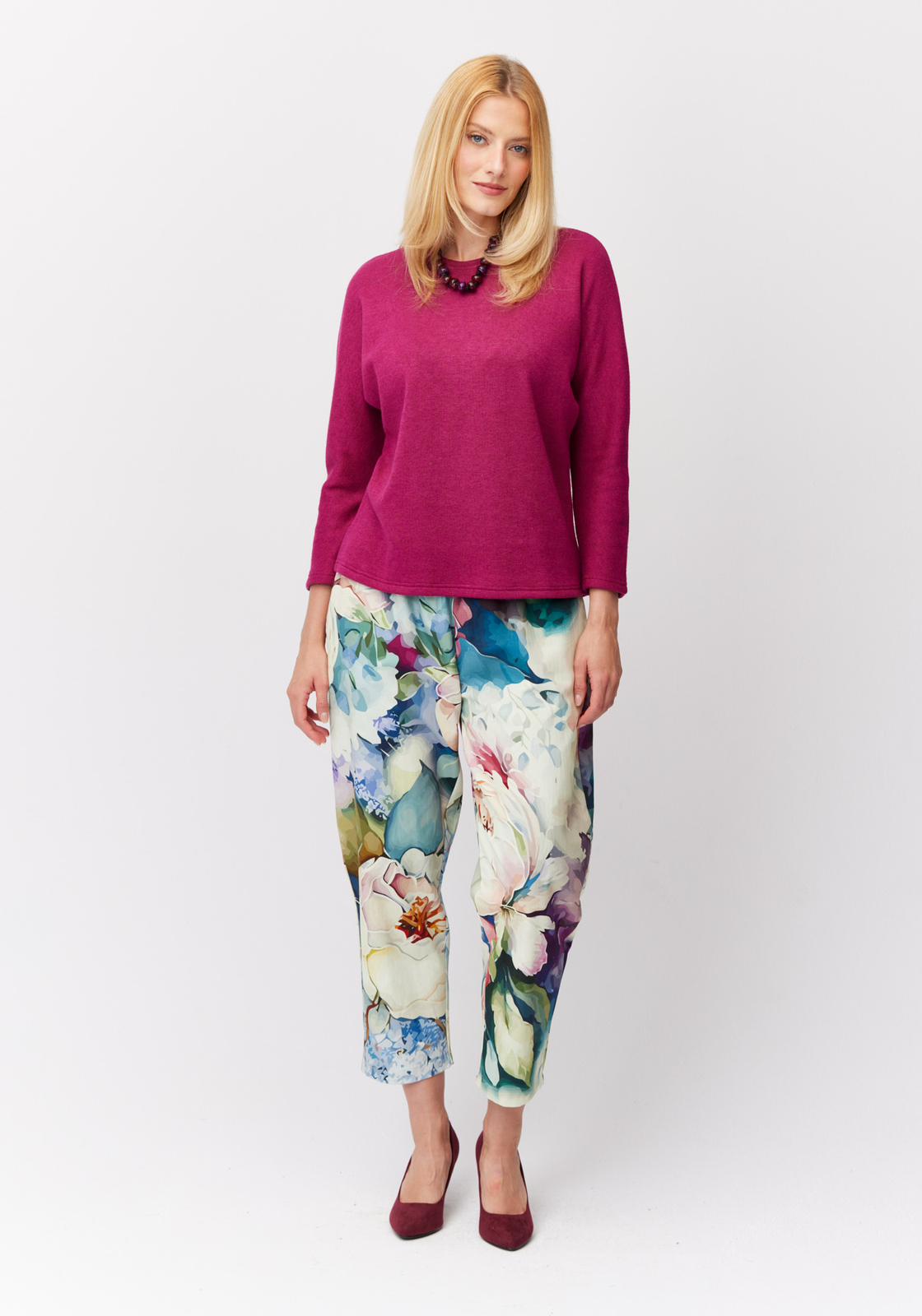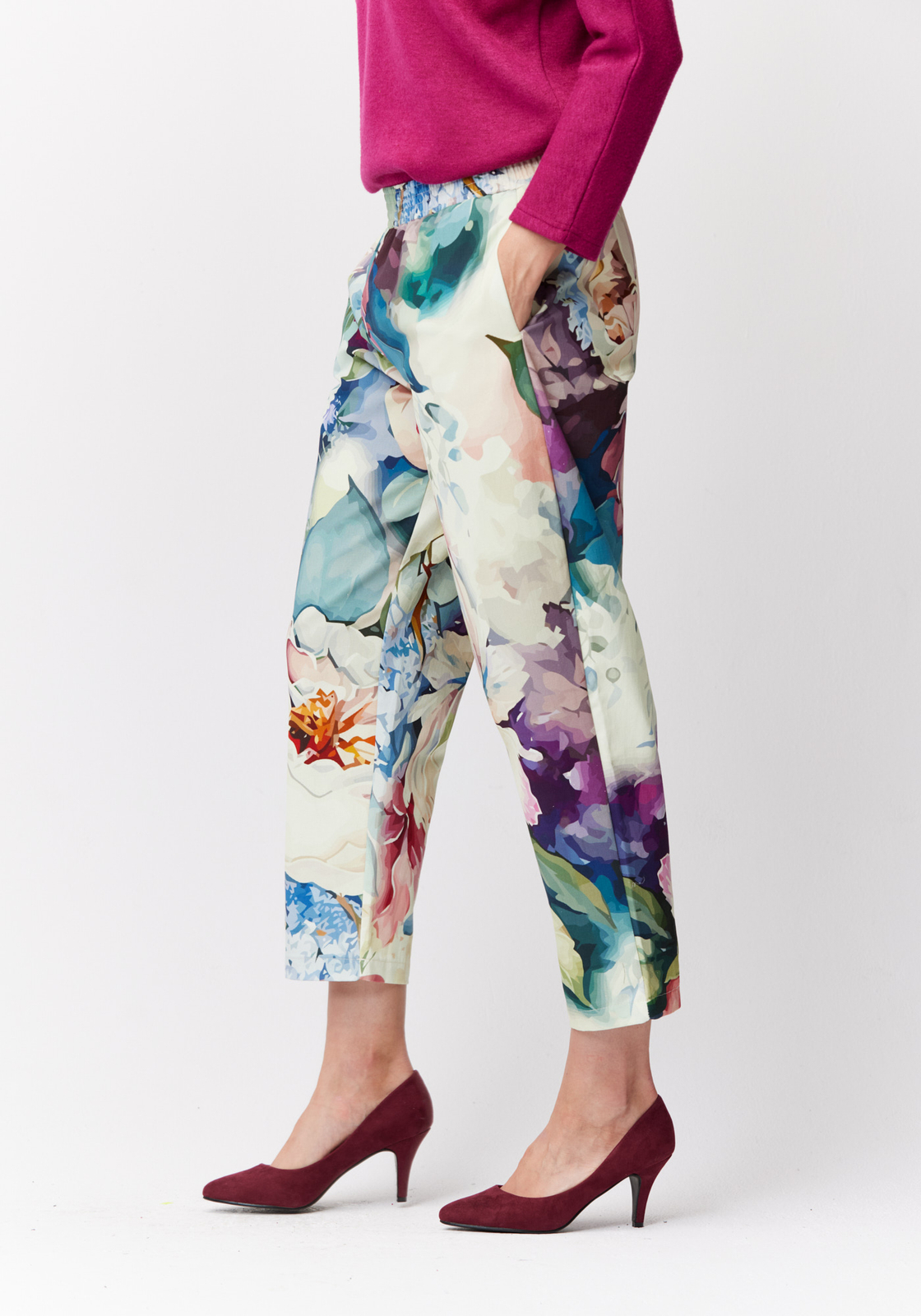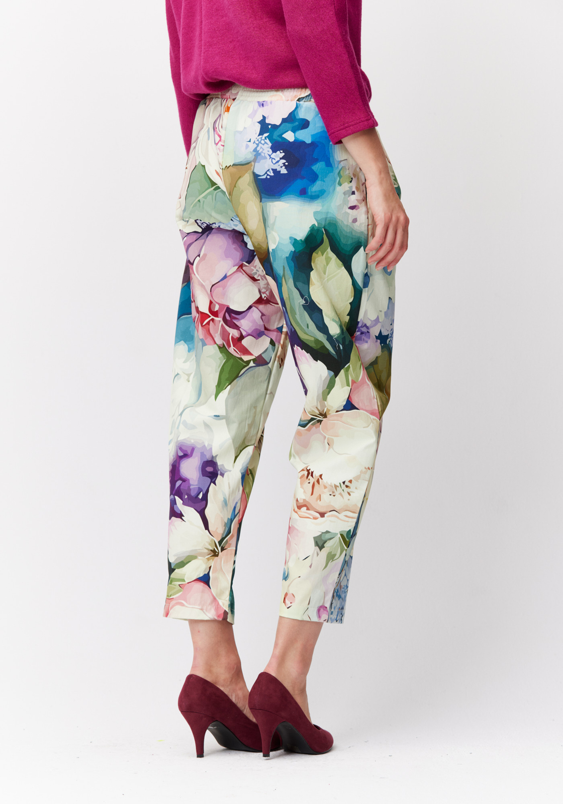 - Pastelowe spodnie w stylu balloon. Kwieciste spodnie z kieszeniami. Idealne sprawdzą się do stylizacji z jednolitą górą.