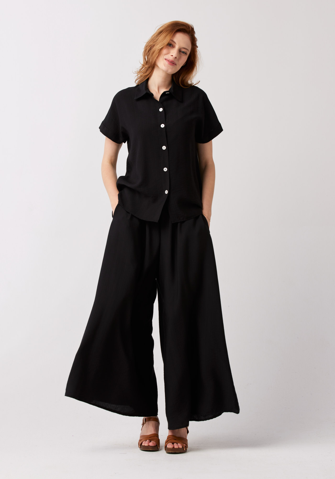 - Bardzo luźne czarne spodnie z wiskozy. Idealny duet na lato z koszulą 3414.