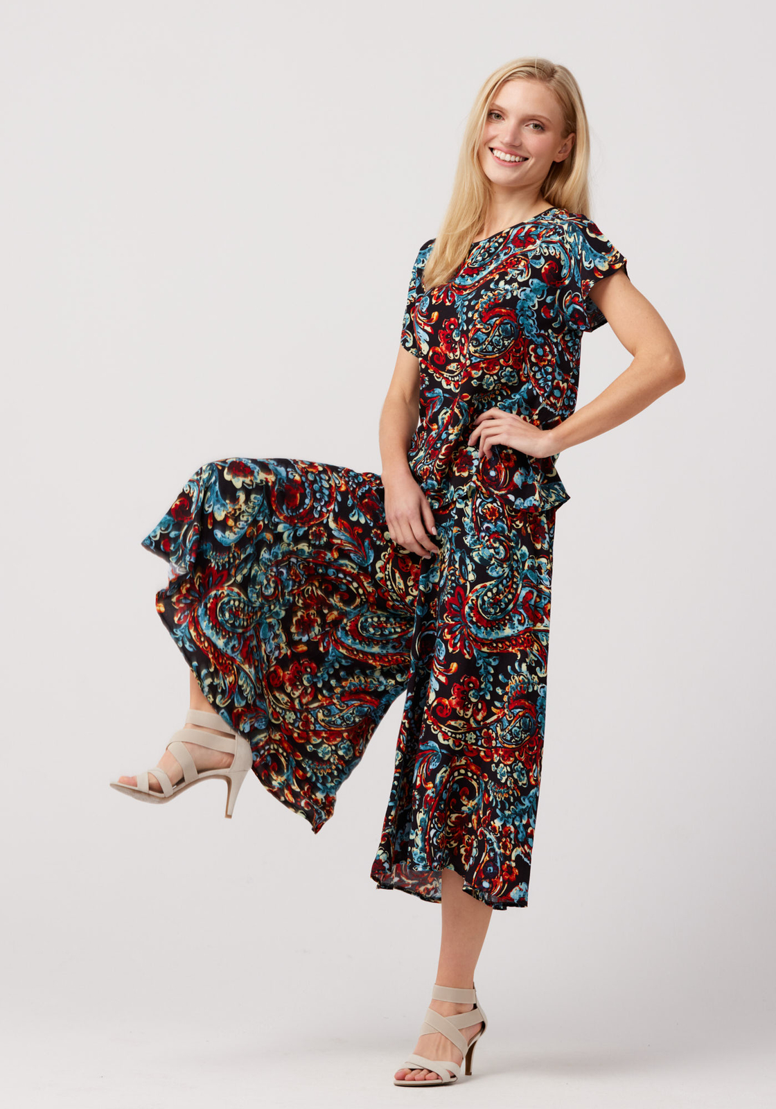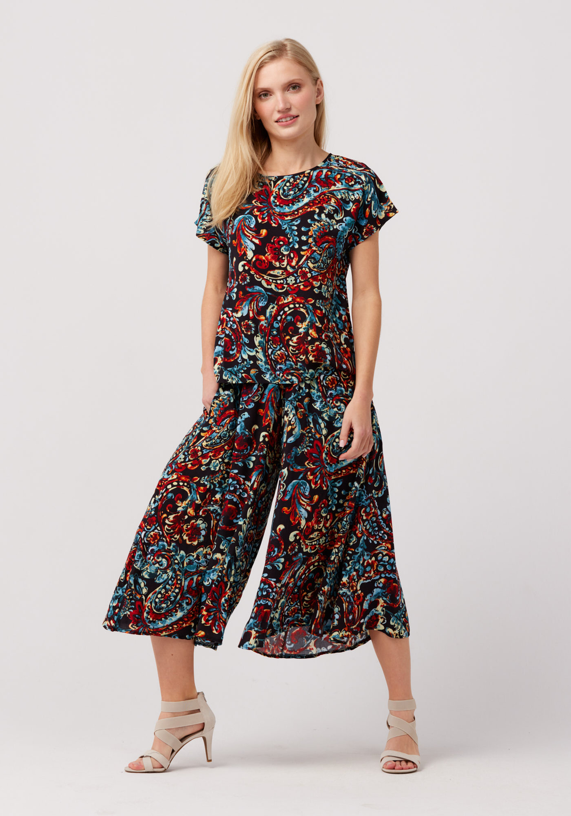 • Czarne, wzorzysta bluzka w wyrazisty, kolorowy wzór. Bardzo Bluzka tworząca komplet ze spodniami 5126.