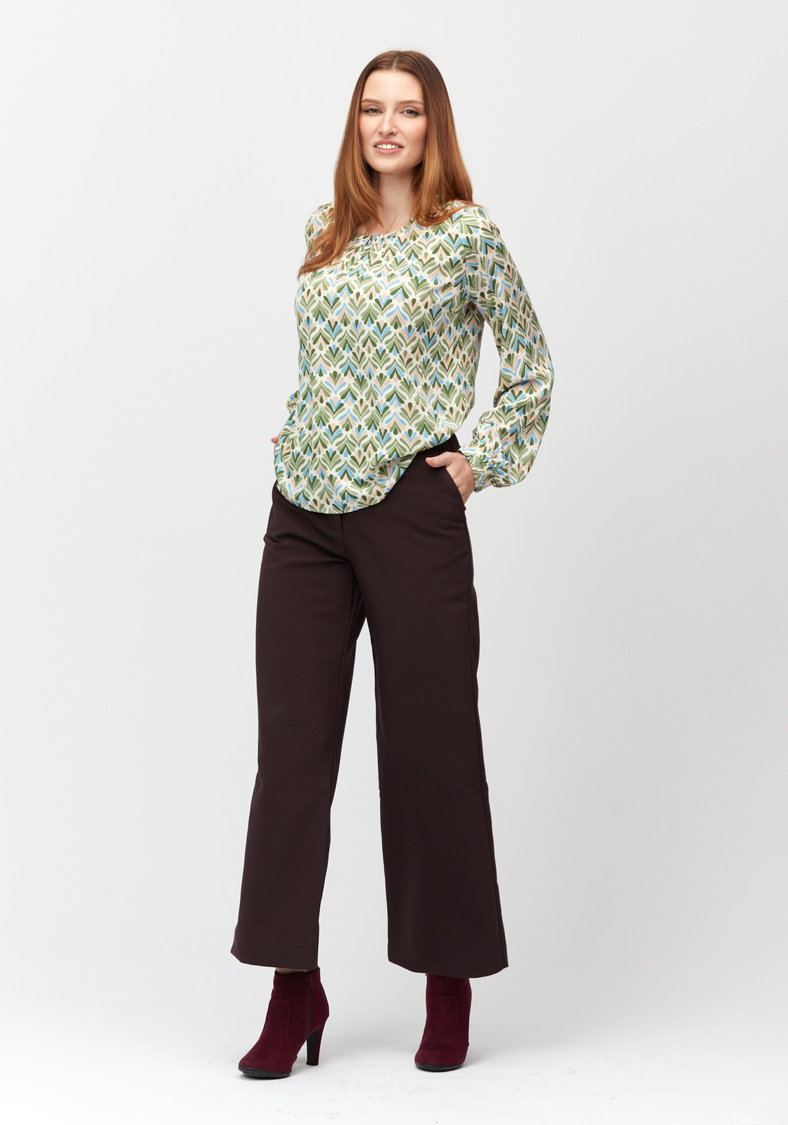 • Swobodna bluzka z wiskozy. Wzorzysta, pastelowa bluzka z wiązaniem na plecach. Jasna bluzka na co dzień.